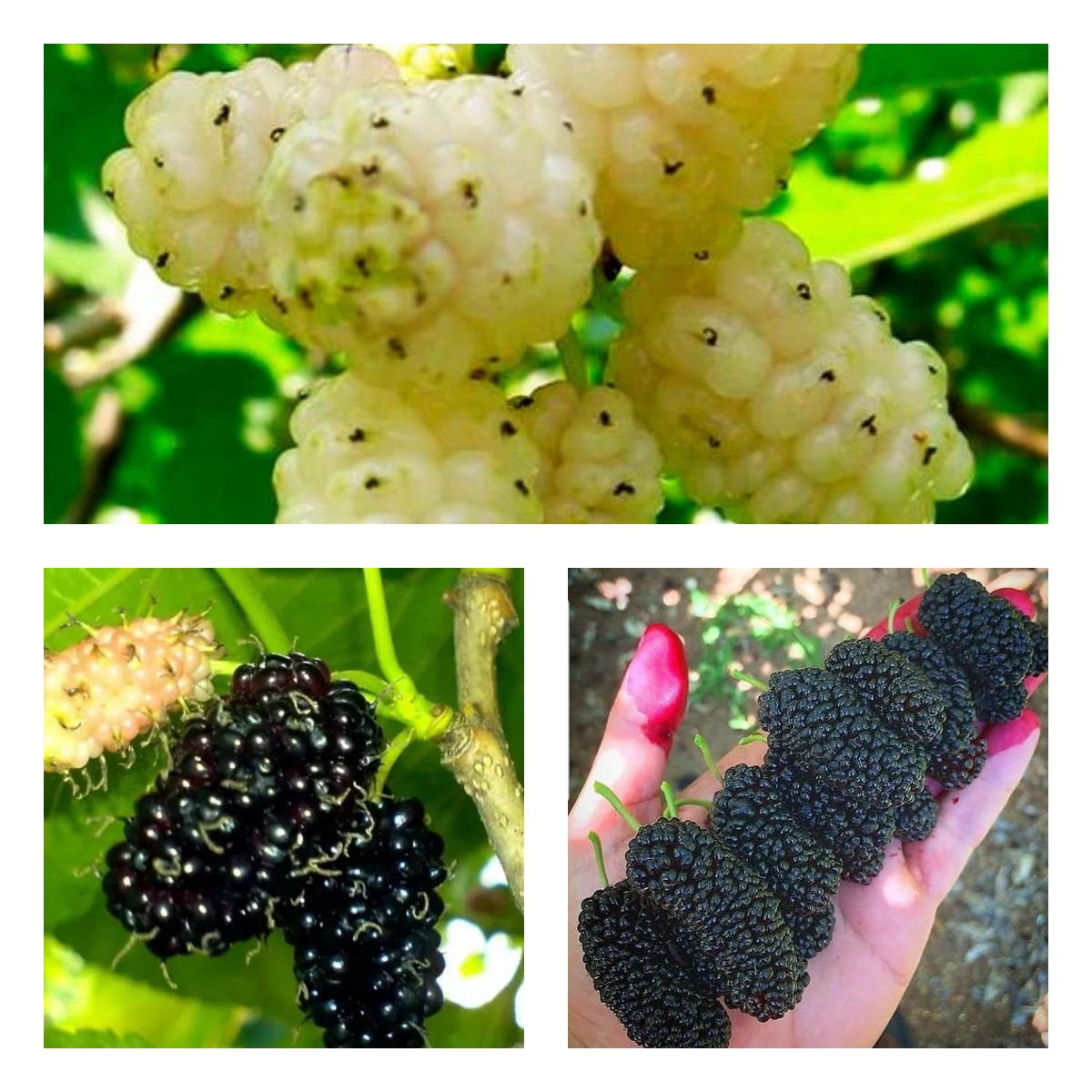 1. Тутовник (шелковица) Белый Медовый (арт. 1875) – отличается сладкими, медовыми ягодами белого цвета. Этот сорт прекрасно подходит для свежего потребления и приготовления десертов.