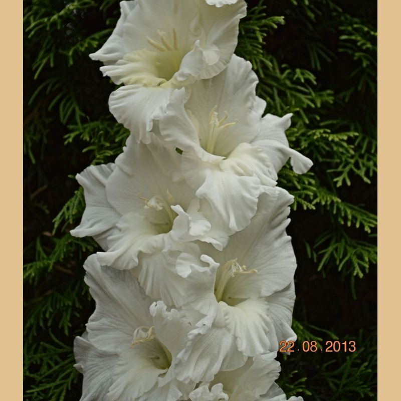 Этот сорт гладиолуса станет настоящим украшением вашего сада, привлекая внимание своей чистотой и изяществом.